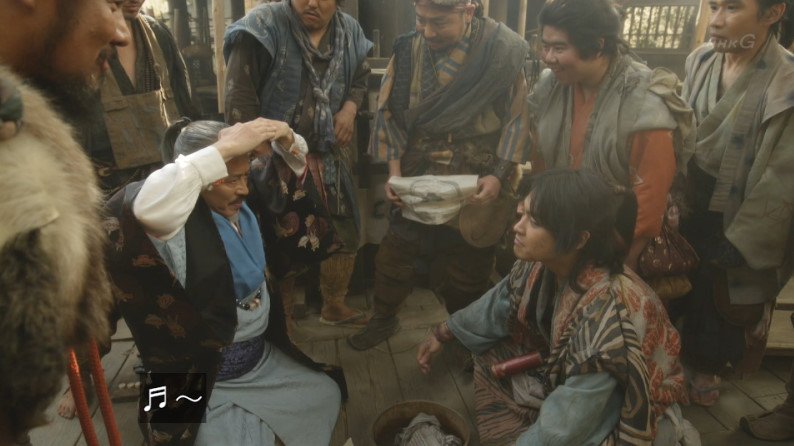 あらすじ中村屋(本田博太郎)と気賀の町衆は井伊谷を訪れ、気賀の城には大沢氏(嶋田久作)ではなく、直虎(柴咲コウ)に入って治めて欲しいと願い出る。瀬戸方久(ムロツヨシ)は井伊が気賀の港を押さえることでさらに商いの手を広げられると意気込み、まずは今川重臣の関口氏経(矢島健一)を懐柔しようと動く。そんな折、今川氏真(尾上松也)のもとに火急の知らせが飛び込む。武田・今川の同盟の要である武田義信が自害したというのだ。一方、中村屋から井伊が気賀の城を治めるかもしれないと聞いた龍雲丸(柳楽優弥)は、城の普請を請け負うと言い出す。万一攻め込まれた際に、船で湖に逃げ出せる城を作ろうというのだ。直虎を城の普請場に案内した龍雲丸は、自らの過去を語り始める。そして、大沢がいくつもの城の普請を抱えていることを教える。大沢が負担を感じているのではと考えた直虎は、方久を通じて大沢を説得。大沢は自らの代わりに井伊が気賀の城に入れるよう氏真に口添えし、ついに井伊が気賀を治めることとなる。
