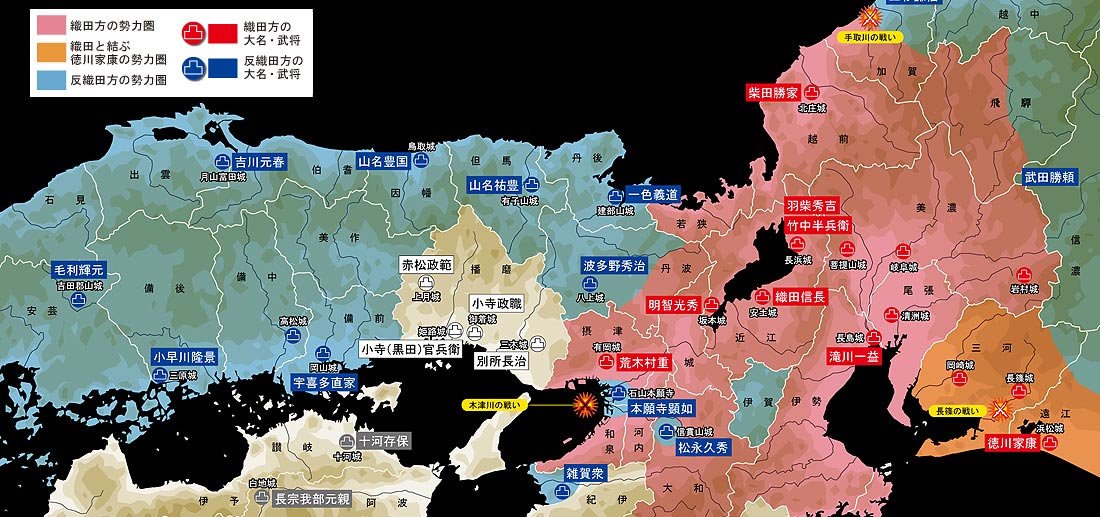 ちょうど中国では毛利が九州では大友が勢力伸ばしてて、四国では長宗我部が台頭し始める