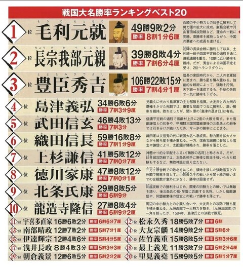 戦国の時代に10戦して死んでないだけで凄いだろうに3桁は異常値
