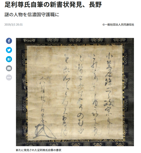 【歴史】足利尊氏自筆の新書状発見、謎の人物「小笠原政宗」を信濃国守護職に 長野